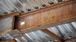 Construction workers send 'get well' note to girl with cancer at Missouri hospital In the midst of cancer treatment, a young girl in Missouri got a big surprise when iron workers wrote her a "get well" message on a construction beam.