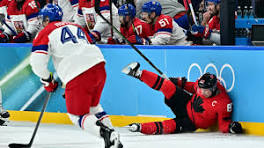 | Sidney Crosby leaves Canada's quarterfinal game vs. Czechia at the Olympics with injury Sidney Crosby has left Canada's Olympic quarterfinal game against Czechia because of injury with his return uncertain.