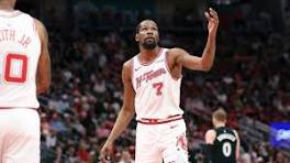 Kevin Durant did not play in Game 1 of the first-round series between the Houston Rockets and the Los Angeles Lakers due to a knee injury, ...